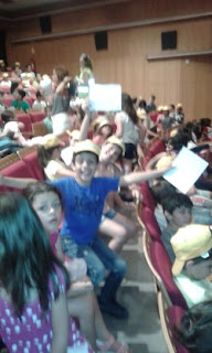 Para finalizar este ano letivo, fomos ao Teatro Miguel Franco assistir ao espetáculo multidisciplinar "Um, dois, três... papelinho japonês", promovido pela empresa responsável pelas AEC "Tempos Brilhantes".